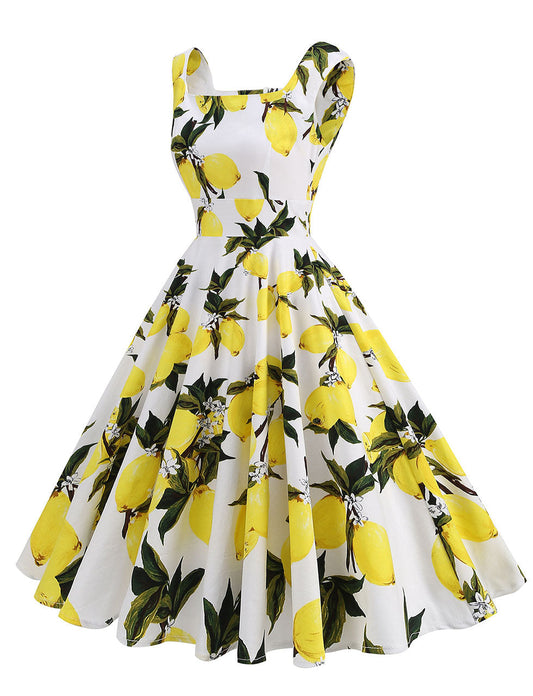 Light Yellow Lemon Sleeveless Audrey Hepburn Style 1950S Vintage Dress
