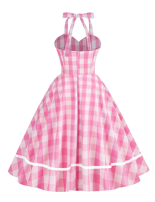 Pink And White Barbie Same Style Plaid Halter 1950S Vintage Dress
