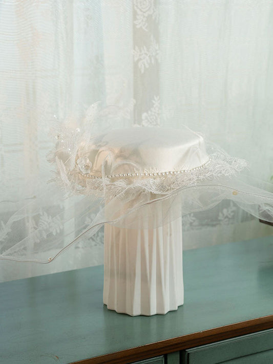 Romantic Dreamy White Flower Light Mesh Brim Wedding 1950S Hat