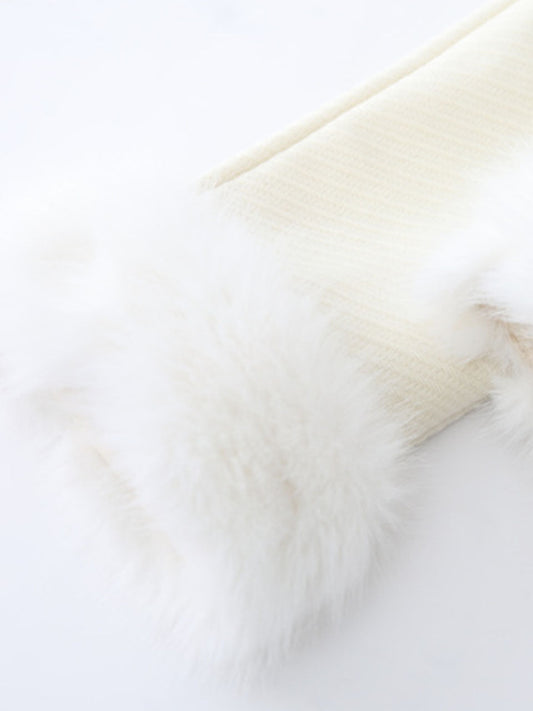 White Lotus Print Velvet Cuffs Rabbit Fur Lined Plush Cheongsam Dress