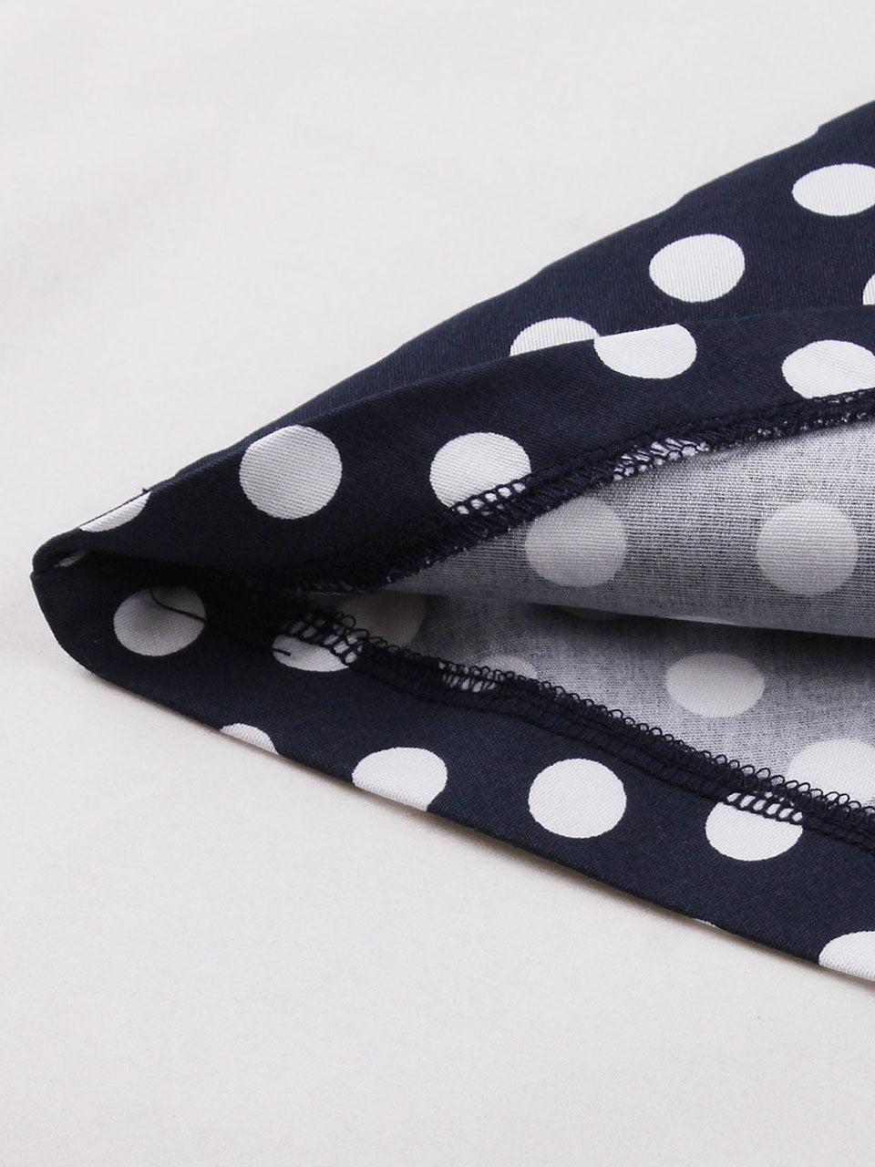 1950S Turndown Collar Polka Dots Short Sleeve Vintage Dress