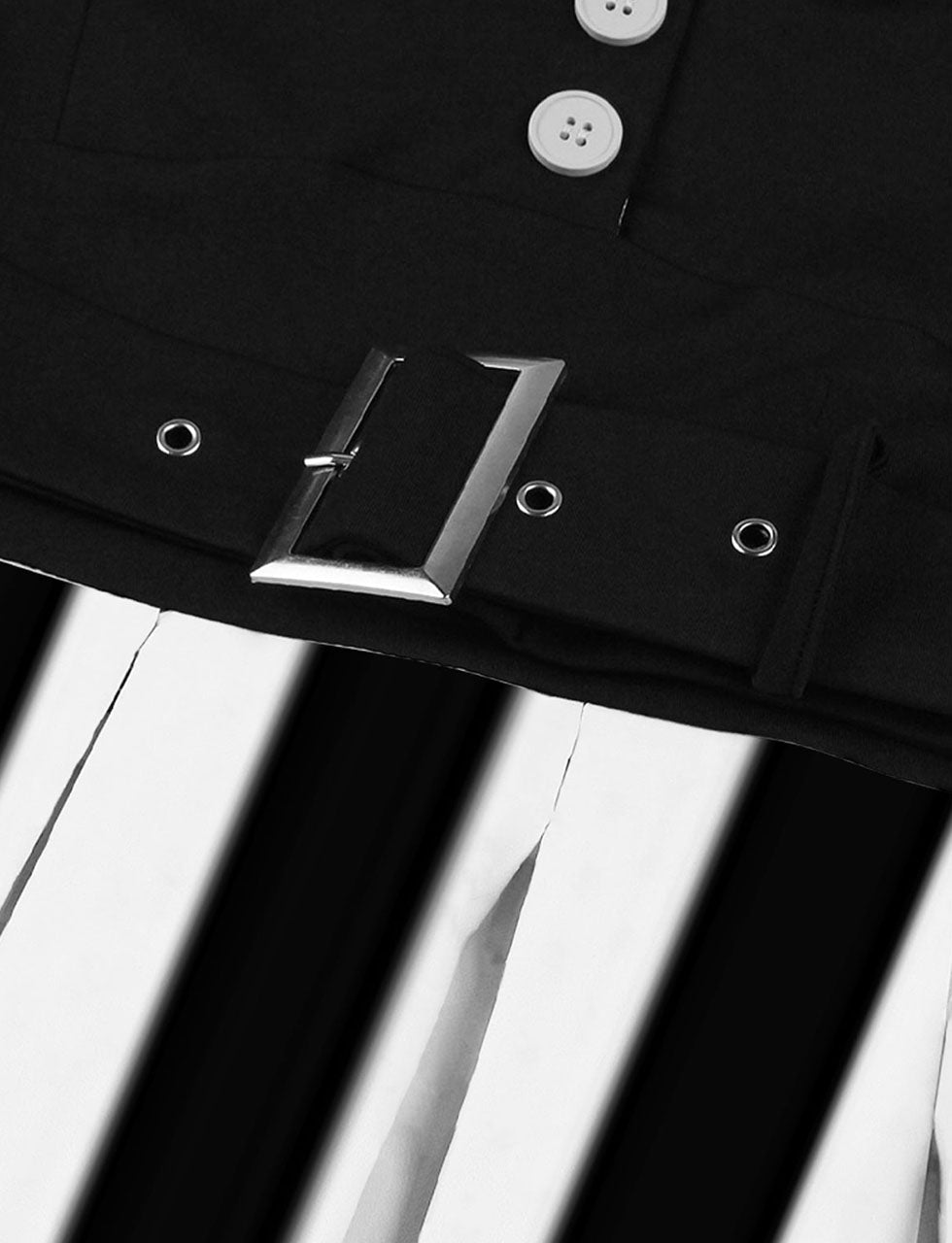 Beetlejuice Costume 1950S Short Sleeve Dress With Black and White Vertical Stripe