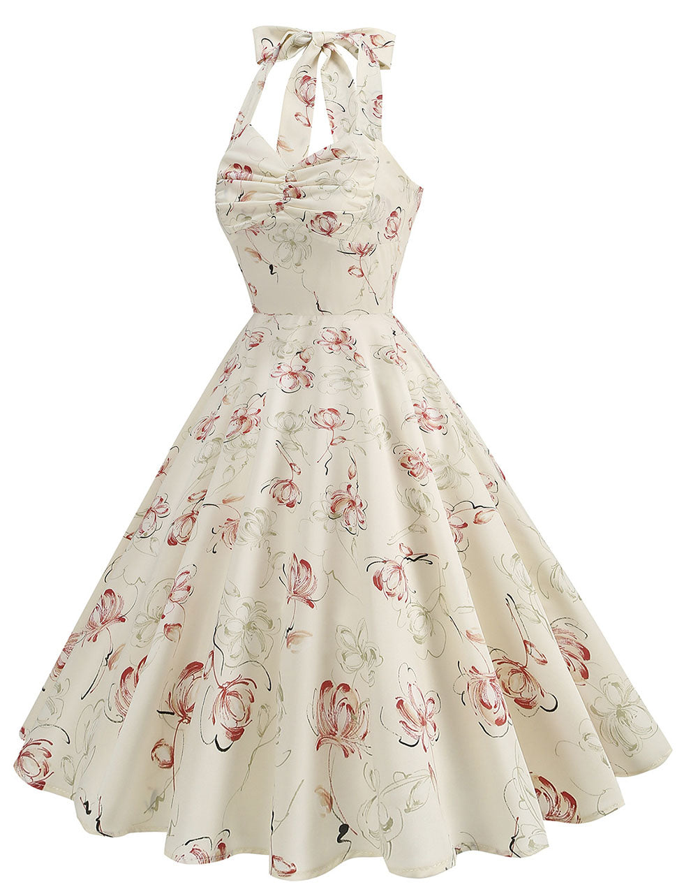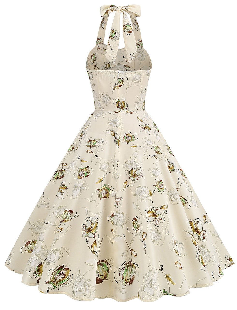 Black Checkerboard Print Halter Backless 1950S Vintage Swing Dress