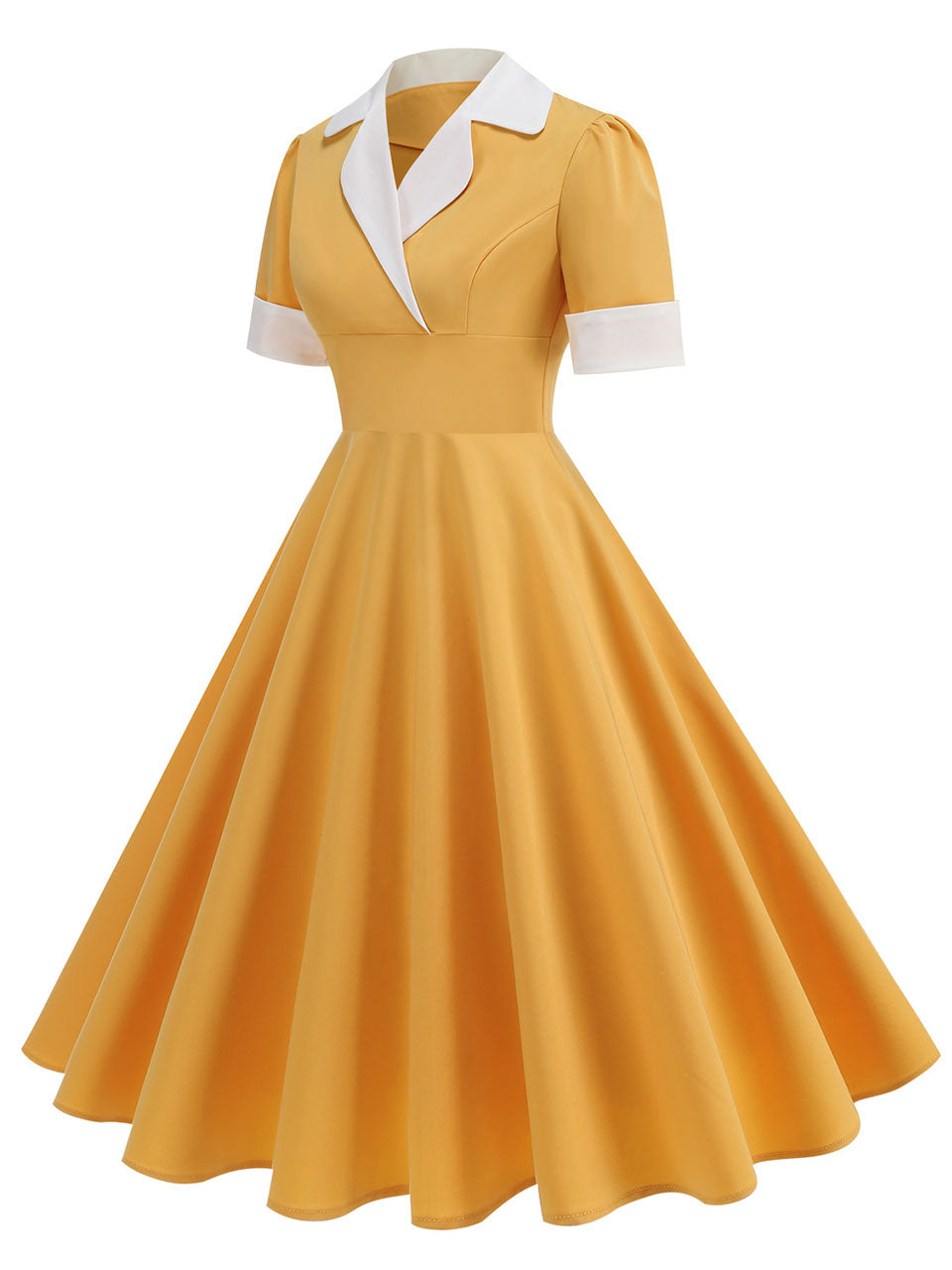 Blue V Neck Short Sleeve Swing Vintage 1950S Dress