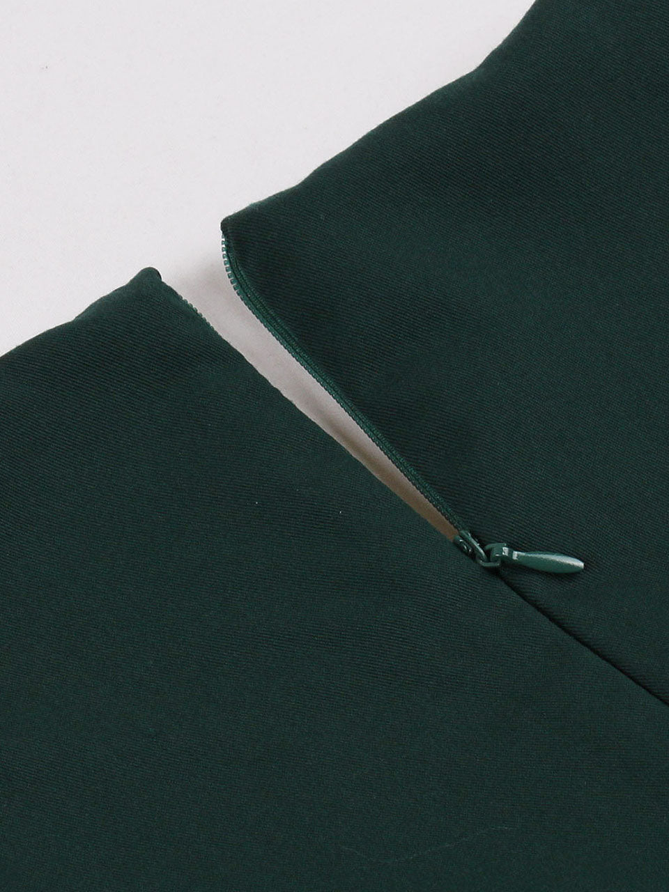 Dark Green Sweet Heart Neck Short Sleeve Vintage Swing Dress With Belt