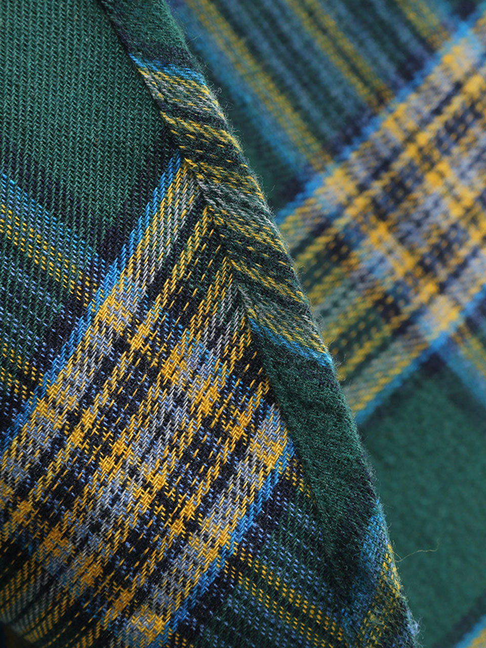 Green Plaid Turn Down Collar Short Sleeves 1950S VintageShirt Dress With Pockets