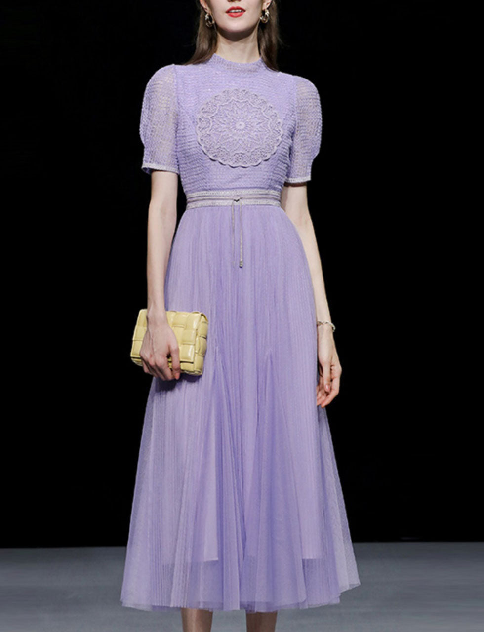 Lilac Flower Embroidery Crew Neck 1950S Barbie Party Dress