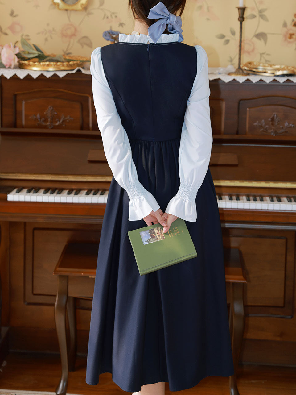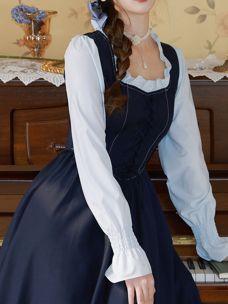 Navy Square Neck Lantern Sleeve Vintage 1950S Dress