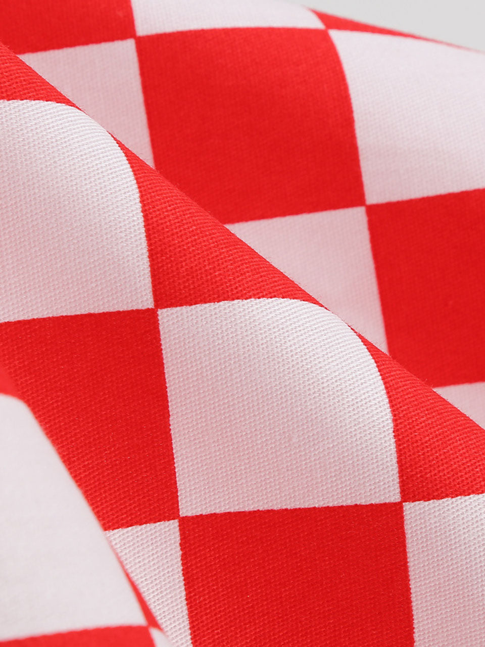 Red Checkerboard High Waist Audrey Hepburn Style Cocktail Suspender Swing Dress