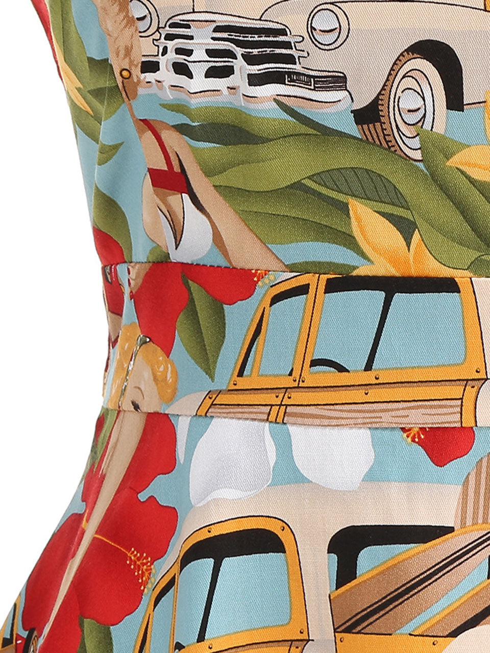 Red Polka Dots V Neck Short Sleeve Swing Vintage 1950S Dress