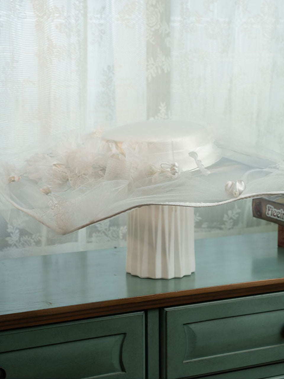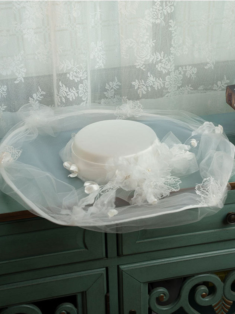 Romantic Dreamy White Flower Light Mesh Brim Wedding 1950S Hat