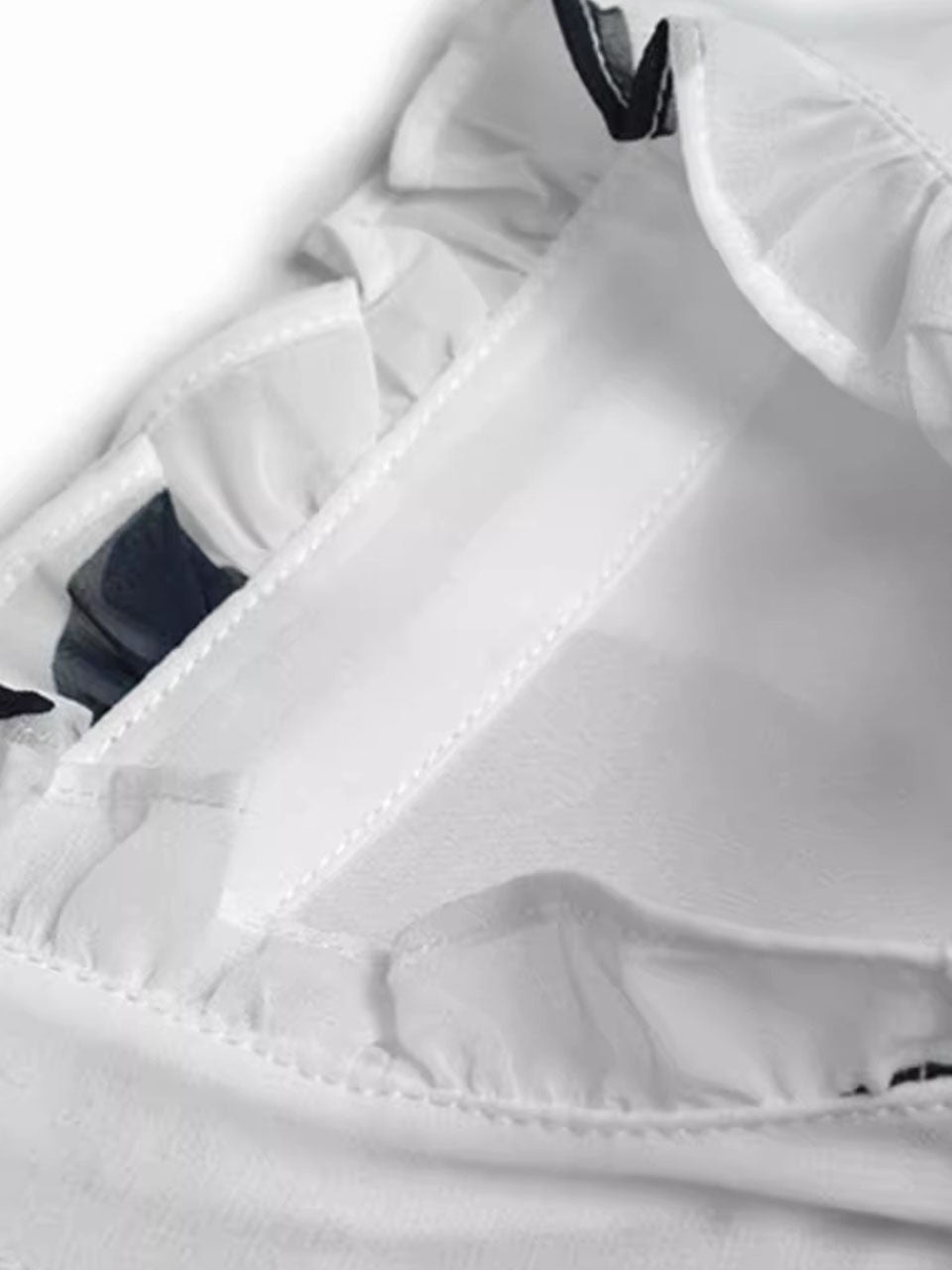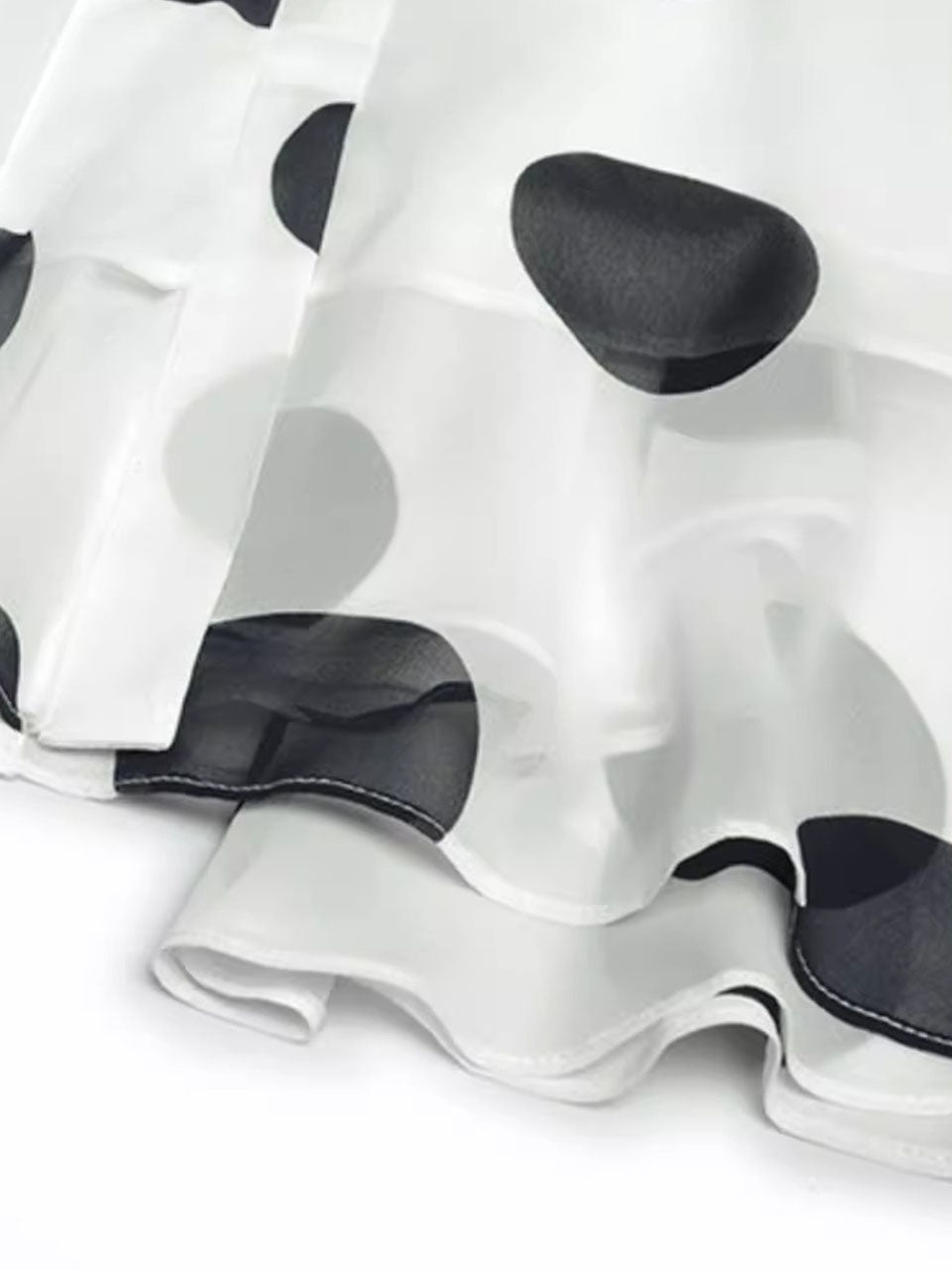 White Victorian Polka Dot Stand Collar Bow Ruffle Short Sleeve Vintage Dress